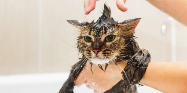 Дуже важливо вимити весь шампунь до останньої краплі. Якщо засіб залишиться на шерсті, кіт його злиже, що може призвести до розладу шлунку.